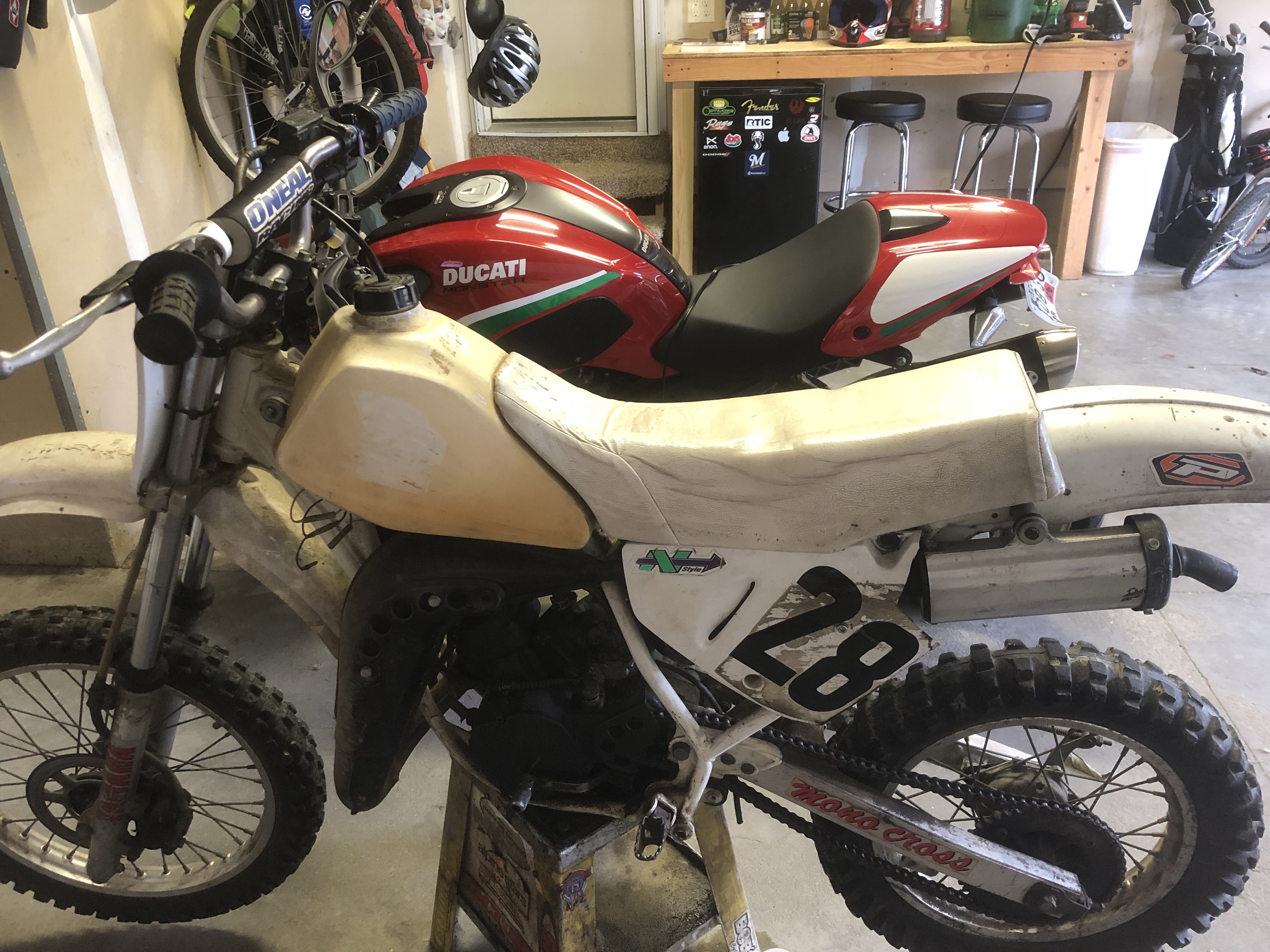 Saturday came and the kids and I went to the grocery store and bought fresh donuts. This was their request Friday night and I obliged. Mid morning comes, it was time to start turning over the garage for winter. Working on putting stuff in the shed and storing items in the garage attic for the season. Happened to get all of that done at an early enough time that I worked on my dirt bike. It has needed a kick starter since it was bought 12 years ago. One was procured this summer and installed today. Little bit of gas and oil and viola it fired right up. Rode it down the road a couple of times and around the yard and that was it. It needs to go hop for sale. Do not ride at all and it needs some TLC. Hopped on the other bike afterwards and took a hot lap on the Ducati. Much better feeling riding the Italian stallion. Coat was actually feeling not as snug as usual. Liking the fact the couple of pounds lost is making a subtle difference. Thought about moving the lawn today but the grass is still a little spongy. The wife came out and said something was wrong with our dog. I came in and he was limping pretty bad on a lag. 4 months ago he tore his ACL in the right leg and took him to the vet. At 12 years old the decision was made that we heal naturally and see what happens. His left leg is finally giving out form over compensating for the injury. Which was one of the possible outcomes. He has been a great dog and time caught up. Called the vet and made an appointment for Monday morning.
