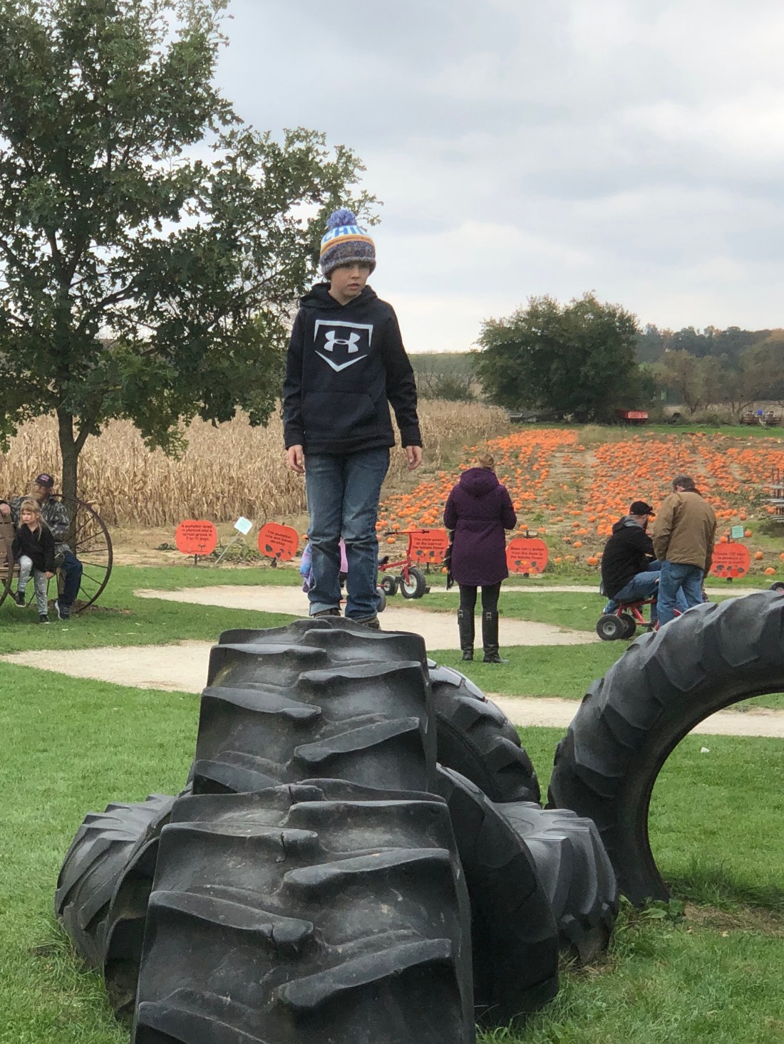 Sunday we went to the pumpkin patch. It was a good time. Ran all over the farm and explored. Managed to get stung by a yellow jacket in my palm when were feeding the goats. That sucked big time. Hand swelled up pretty good and itched. We did the corn maze and that was actually about a 30 minute adventure as we checked out the dead ends and meandered our way through. The kids had a blast and it was good to get out for the day. Got home and took 2 Benadryl for the bee sting. It messed me up pretty good. Tried to sleep a little while I watched a movie with Sam. I was irrational and irritable from the medicine. Ate some meatloaf dinner and had to sleep.