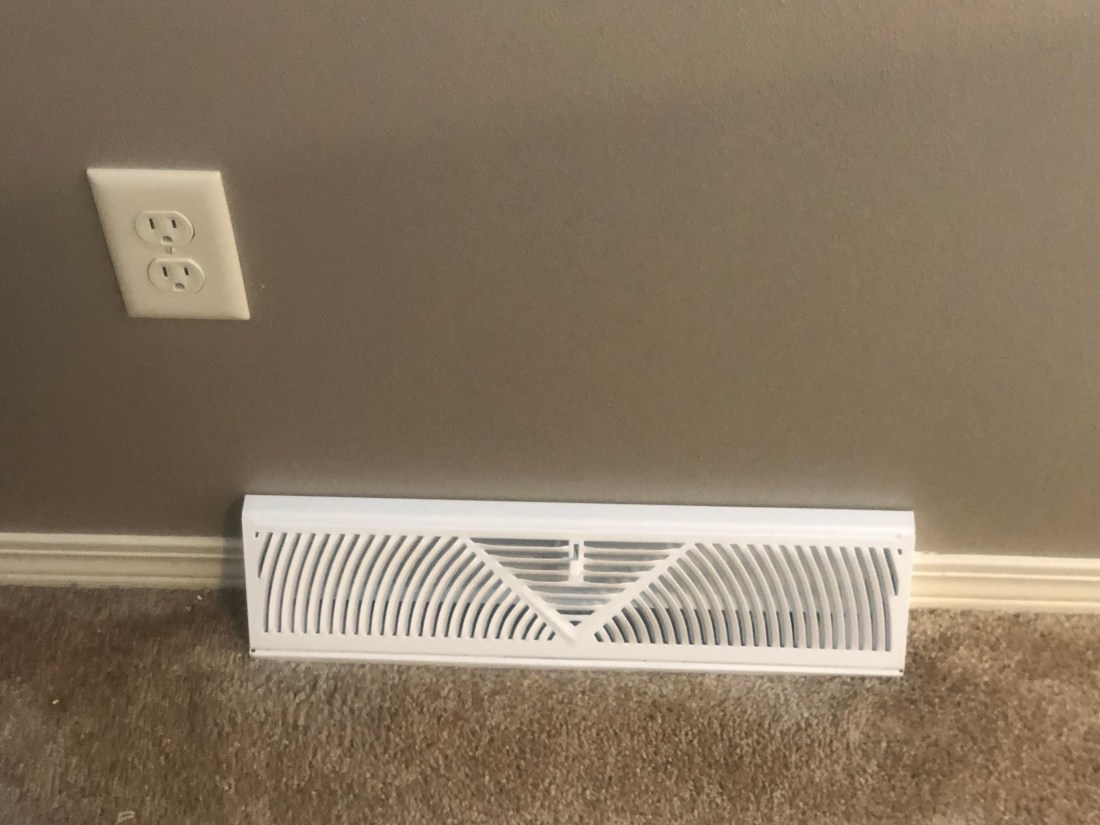 Today the master bedroom got completed. Finished installing the vent registers and finally hung the tv on the wall. Installed a new outlet behind the tv and had to get creative with the antenna. We do not have cable and choose to stream for tv channels. I have digital antennas for the tv’s to get the local channels. These are the flat flexible ones that mount on the wall behind or above the tv. Ours was above and it was not the best thing to look at it worked. My return air duct is adjacaent to where our tv is mounted. So why not install the antenna in the air return? We have an upper and lower air return. So before replacing the register I installed the antenna and cut in a box behind the tv and stuck out the antenna wire to connect to the tv. Bam, win for Jim!