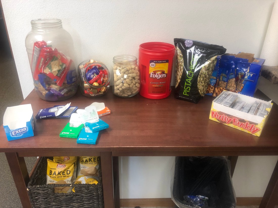Picture is of the treat counter at work. Working on my will power not to eat any treats during the day. Today I had none.