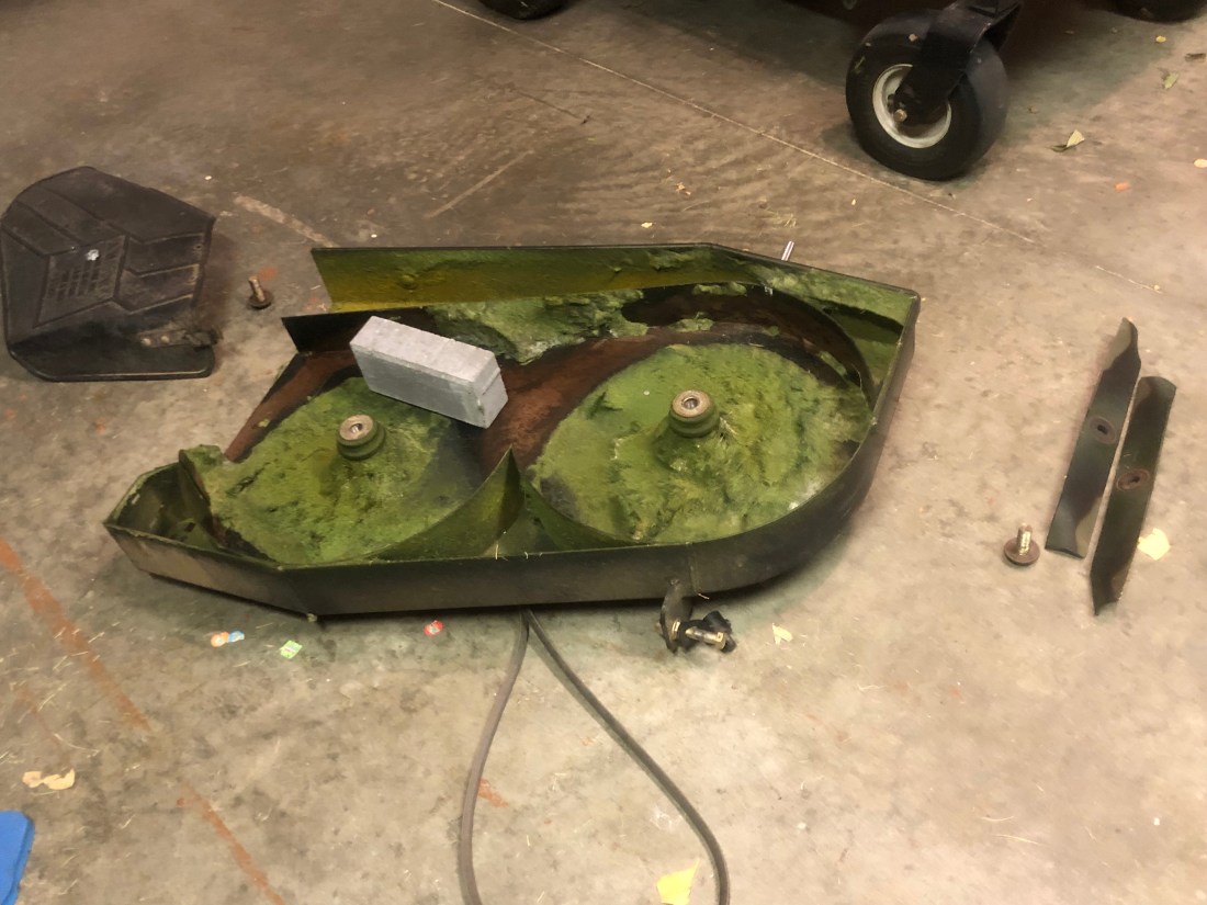 After dinner went into the garage and installed the baffles and new mower blades. Reinstalled the mower deck to the rider. My youngest helped out at the end. It was hot in the garage and worked up a nice lather completing the mower project. Celebrated with 1 bud light. Helped the youngest with a bath. No work out this evening either. Ended the night watching the Brewer / cubs, they lost tonight.