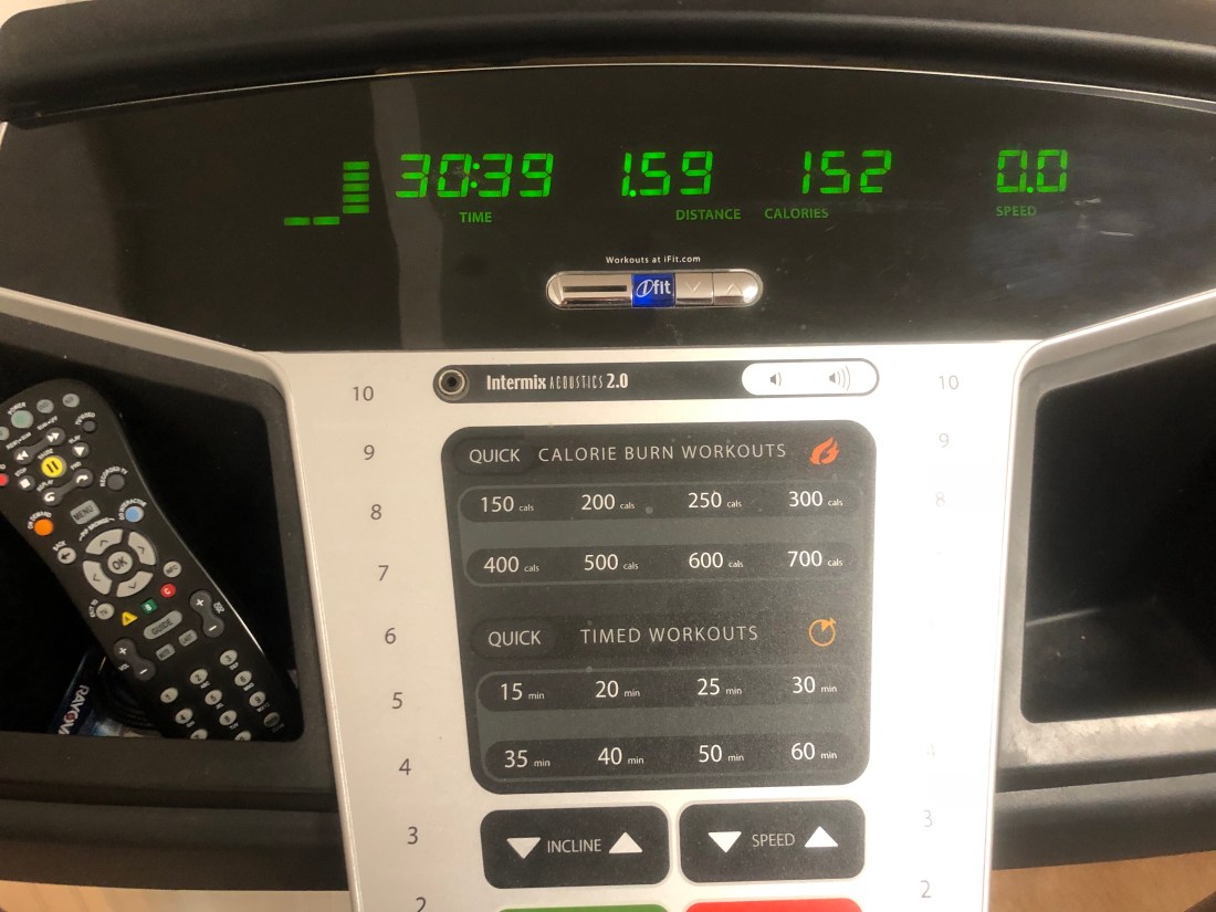 I took it easy first time on the treadmill in awhile. Last thing I need is to have a strain or injury right away. Overall it was good. Got a decent sweat going and drank some water afterwards.